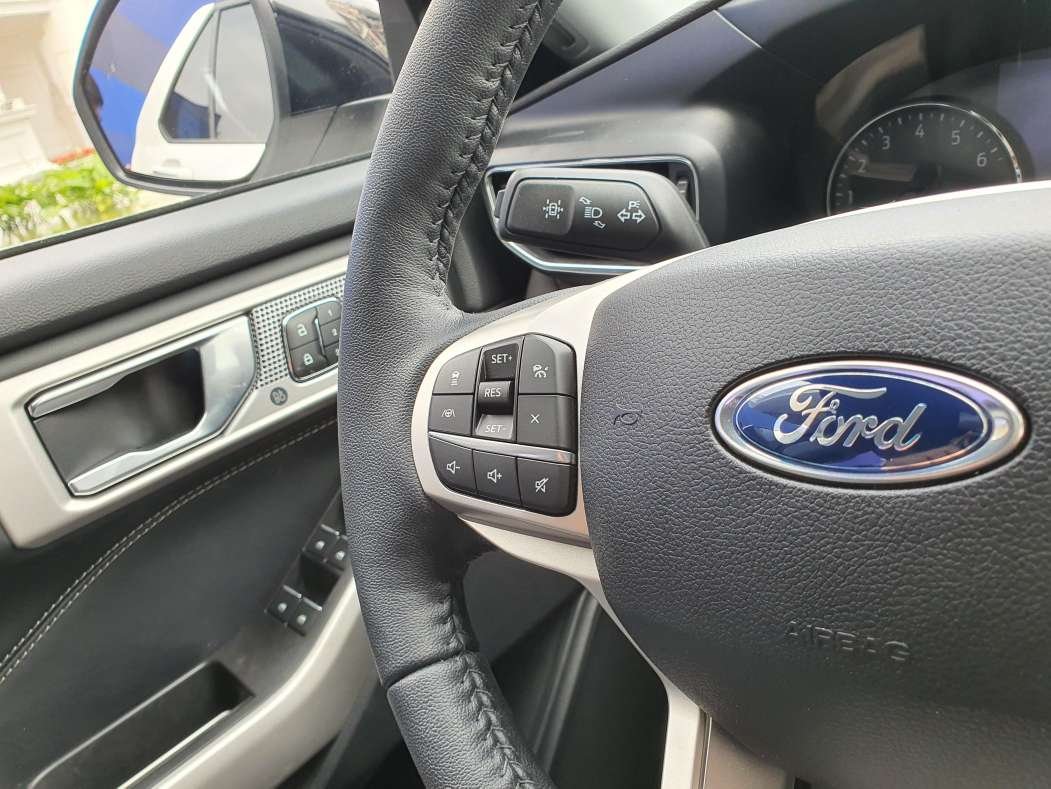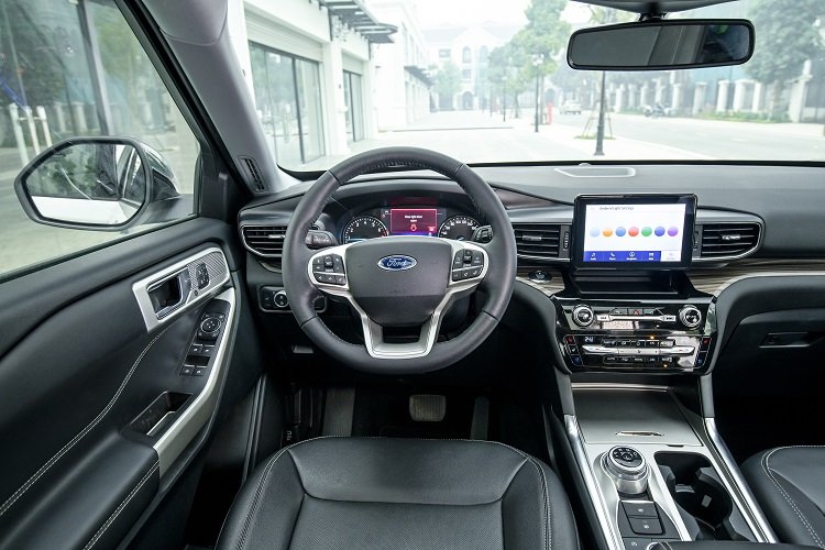 Màn hình giải trí trung tâm có kích thước chỉ 8 inch, khá thua thiệt so với các đối thủ trong phân khúc. Explorer 2022 sử dụng vô lăng đa chức năng 3 chấu bọc da có tính năng sưởi, chỉnh điện 4 hướng hiện đại nhưng lại thiếu đi 2 lẫy chuyển số so với bản quốc tế.