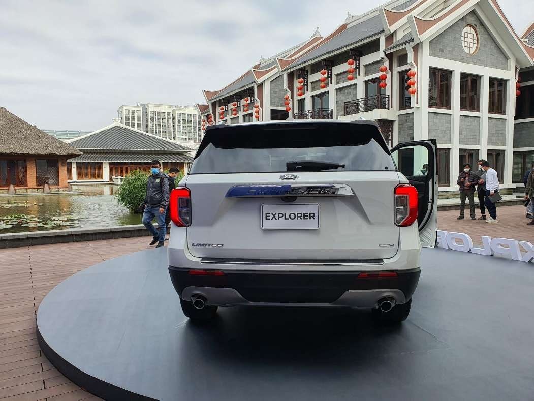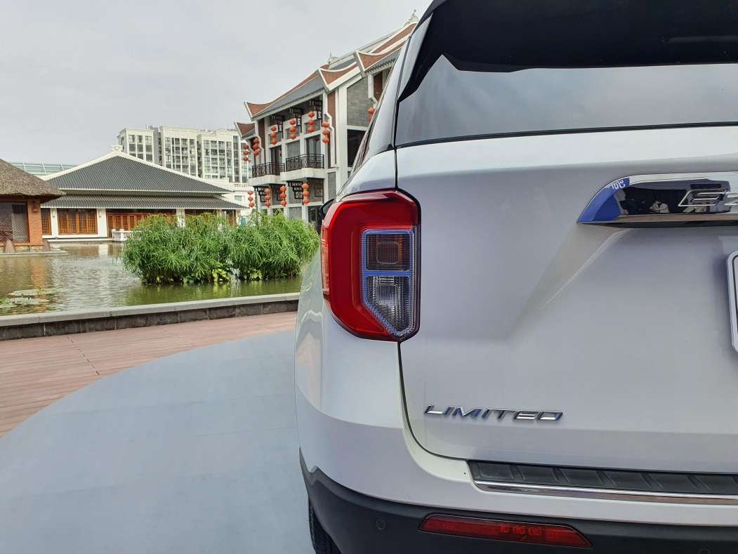Phần đuôi xe Ford Explorer 2022 có thiết kế vuông vức gồm những đường nét dứt khoát, dễ dàng ghi điểm với cánh mày râu. Chi tiết thu hút nhất là cụm đèn hậu LED 3D có đồ hoạ chữ “C” bắt mắt. Explorer 2022 cũng không kém phần thể thao nhờ sử dụng hệ thống ống xả kép đối xứng dạng tròn.